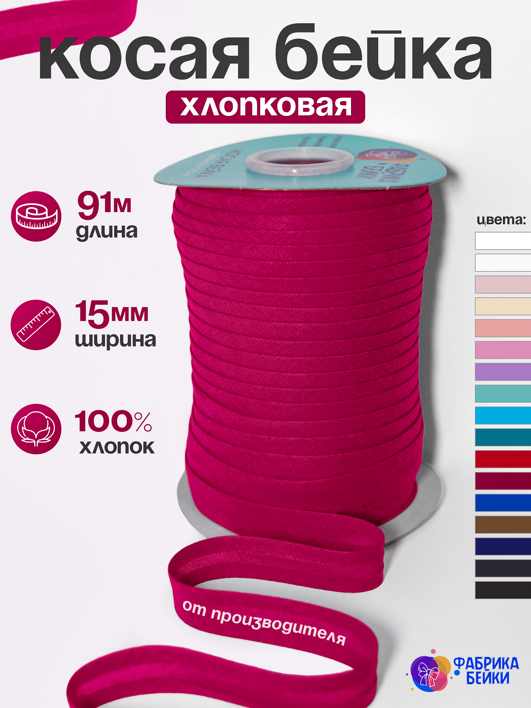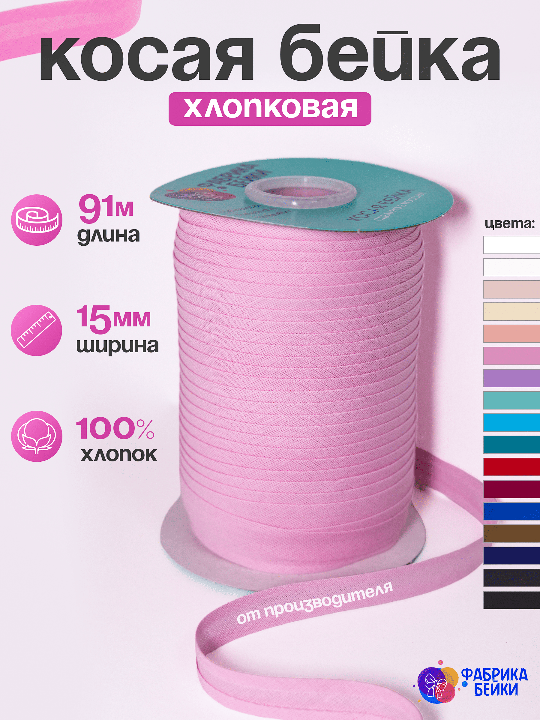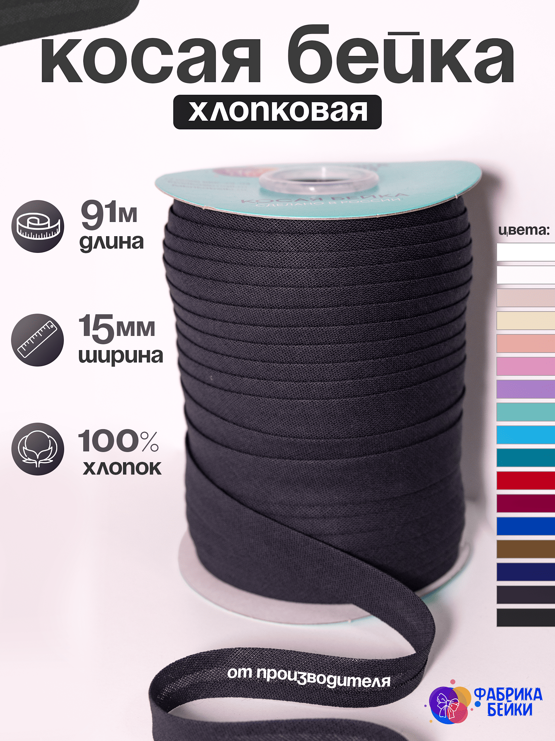 Производство полного цикла швейной фурнитуры. К вашему вниманию представляет готовую косую окантовочную ленту для производства одежды и аксессуаров.