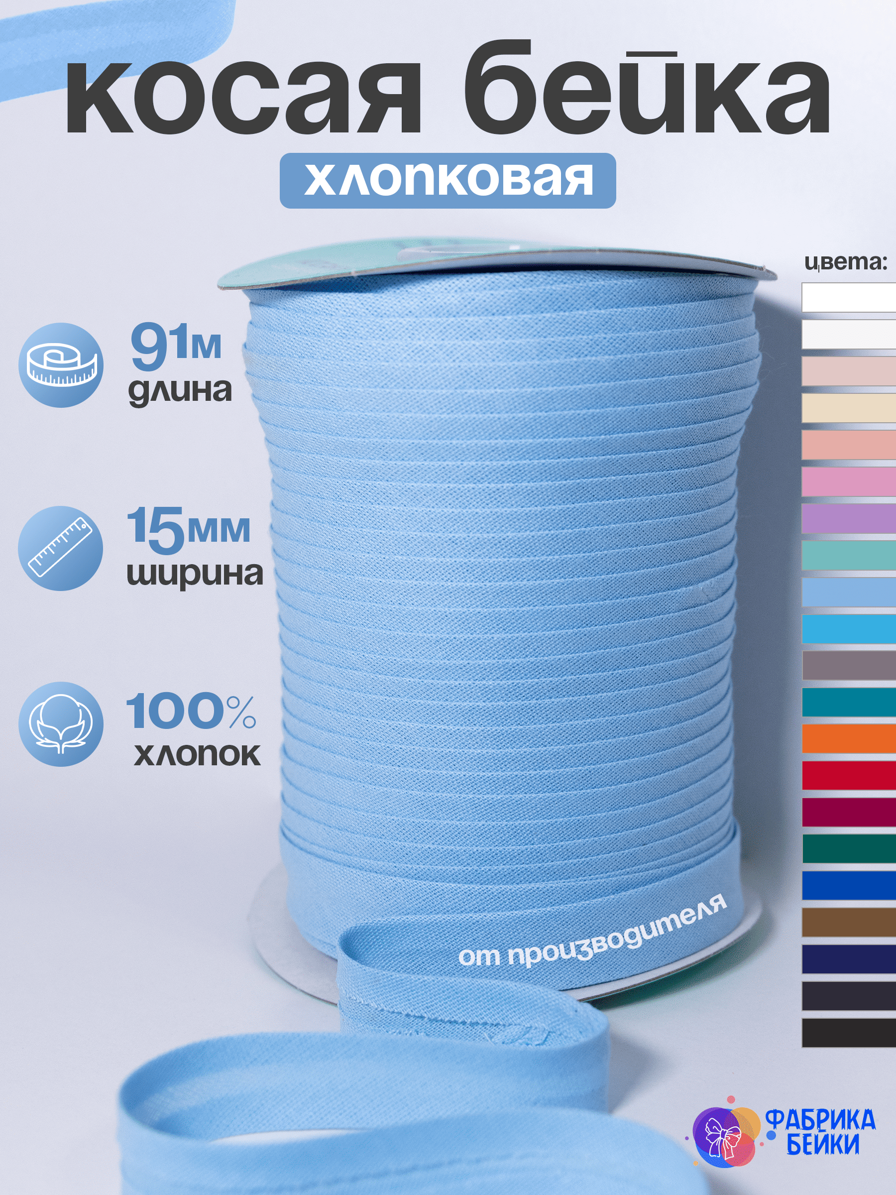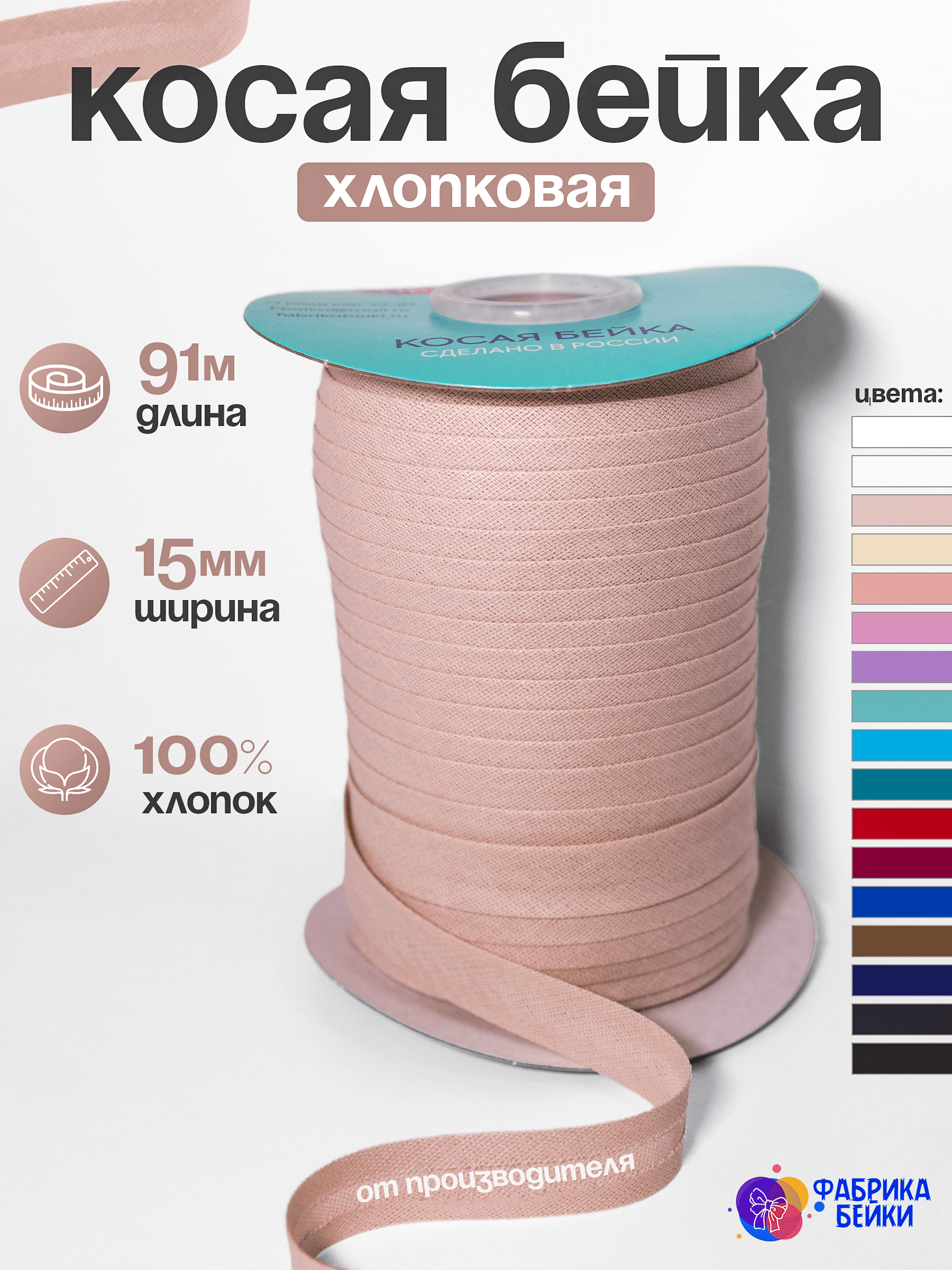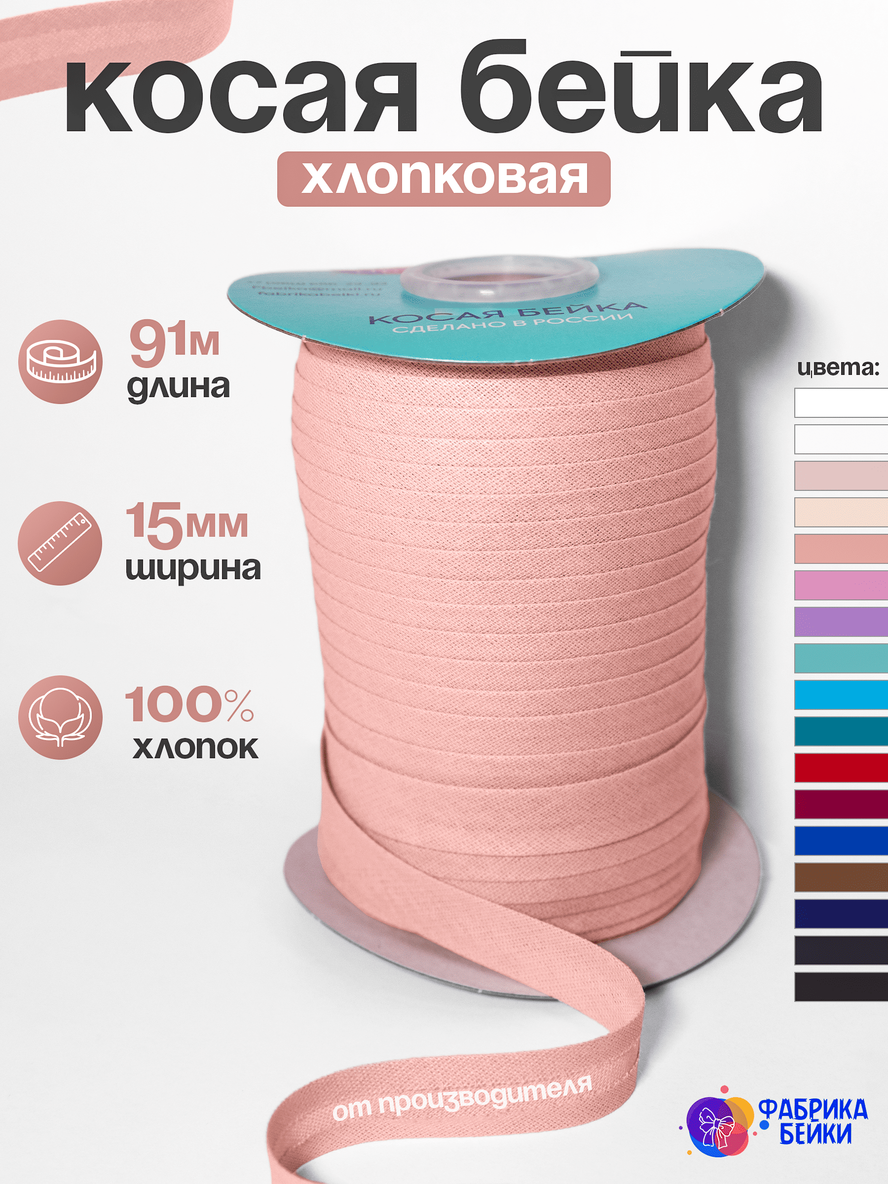 Производство полного цикла швейной фурнитуры. К вашему вниманию представляет готовую косую окантовочную ленту для производства одежды и аксессуаров.
