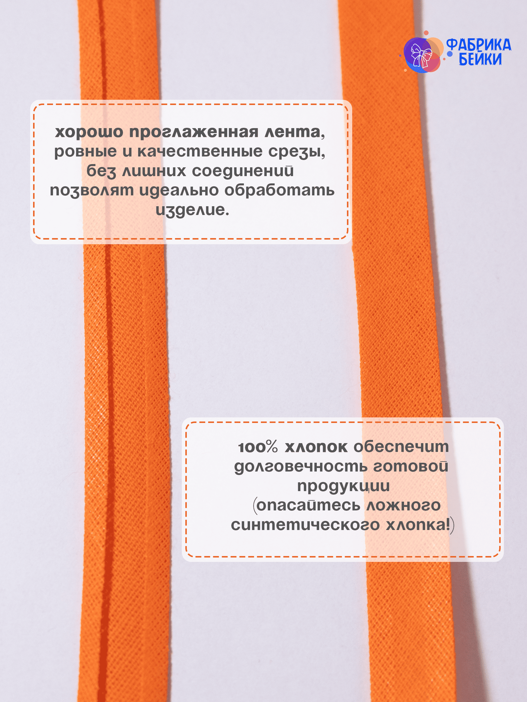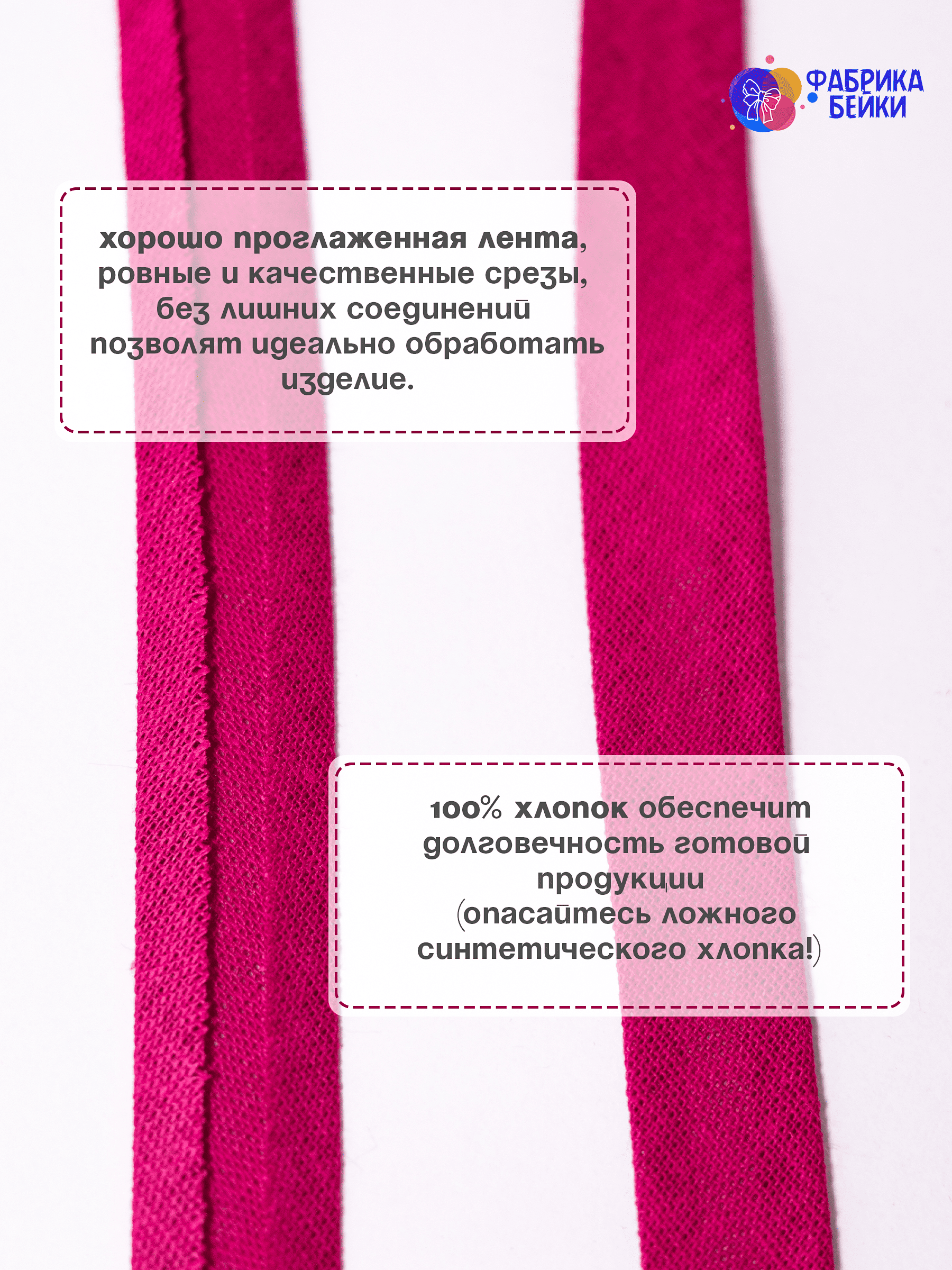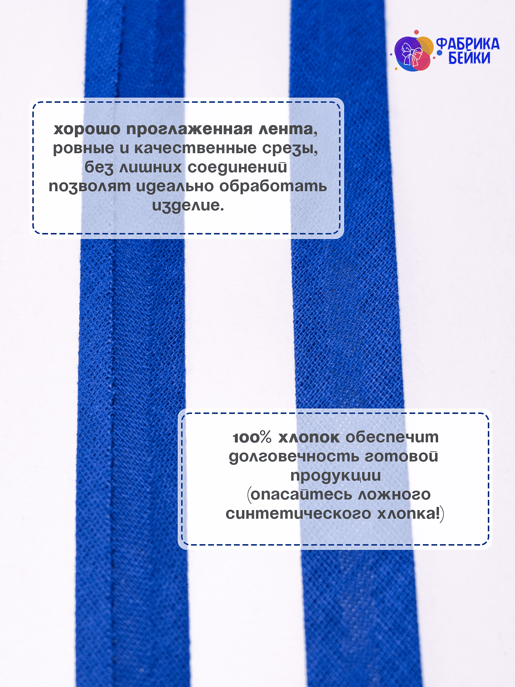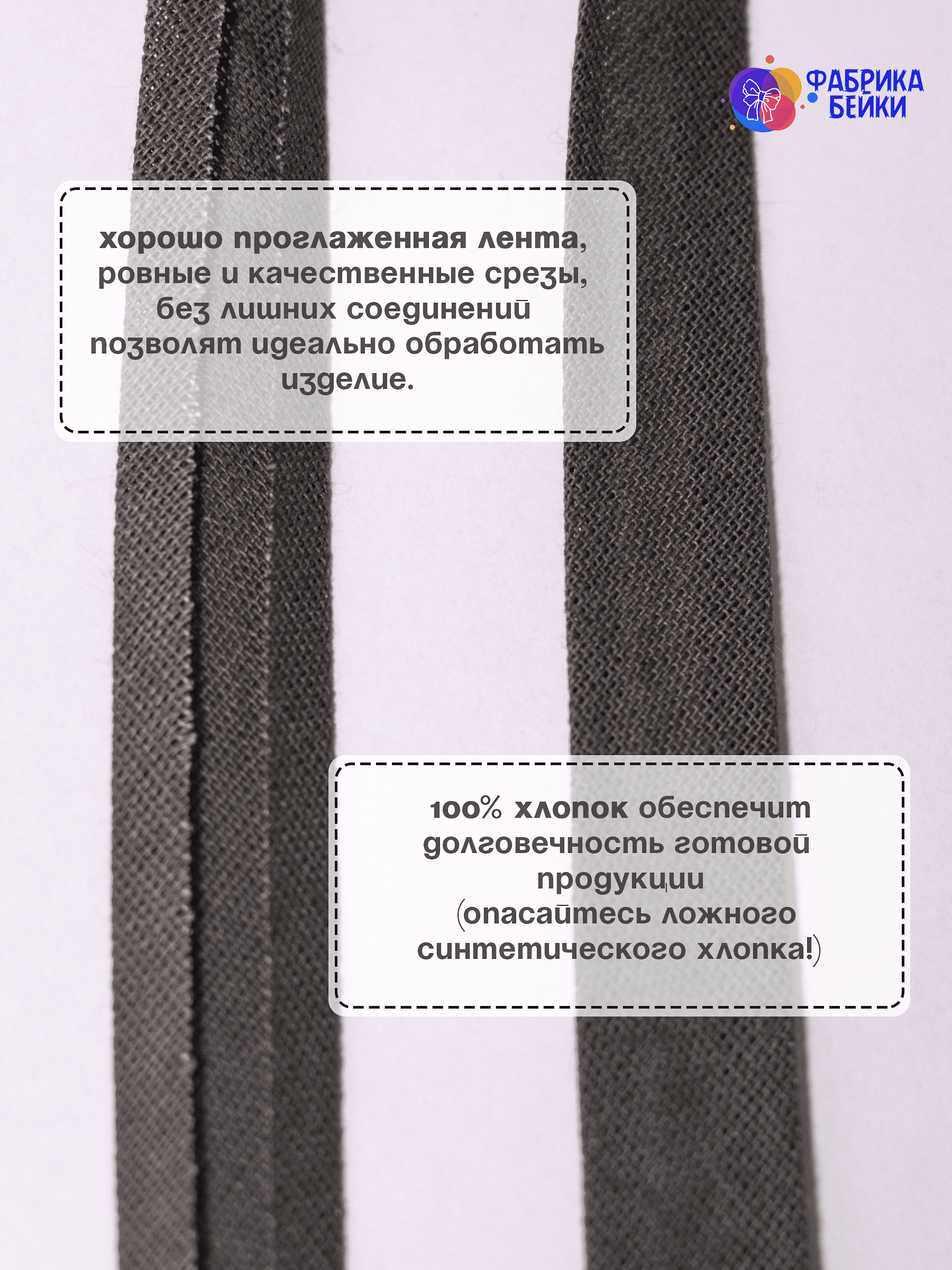 Изготовленная из 100% хлопка, раскроенная под углом 45% обеспечивает эластичность для обработки изделия, уже готовая к работе заглаженная по краям лента.