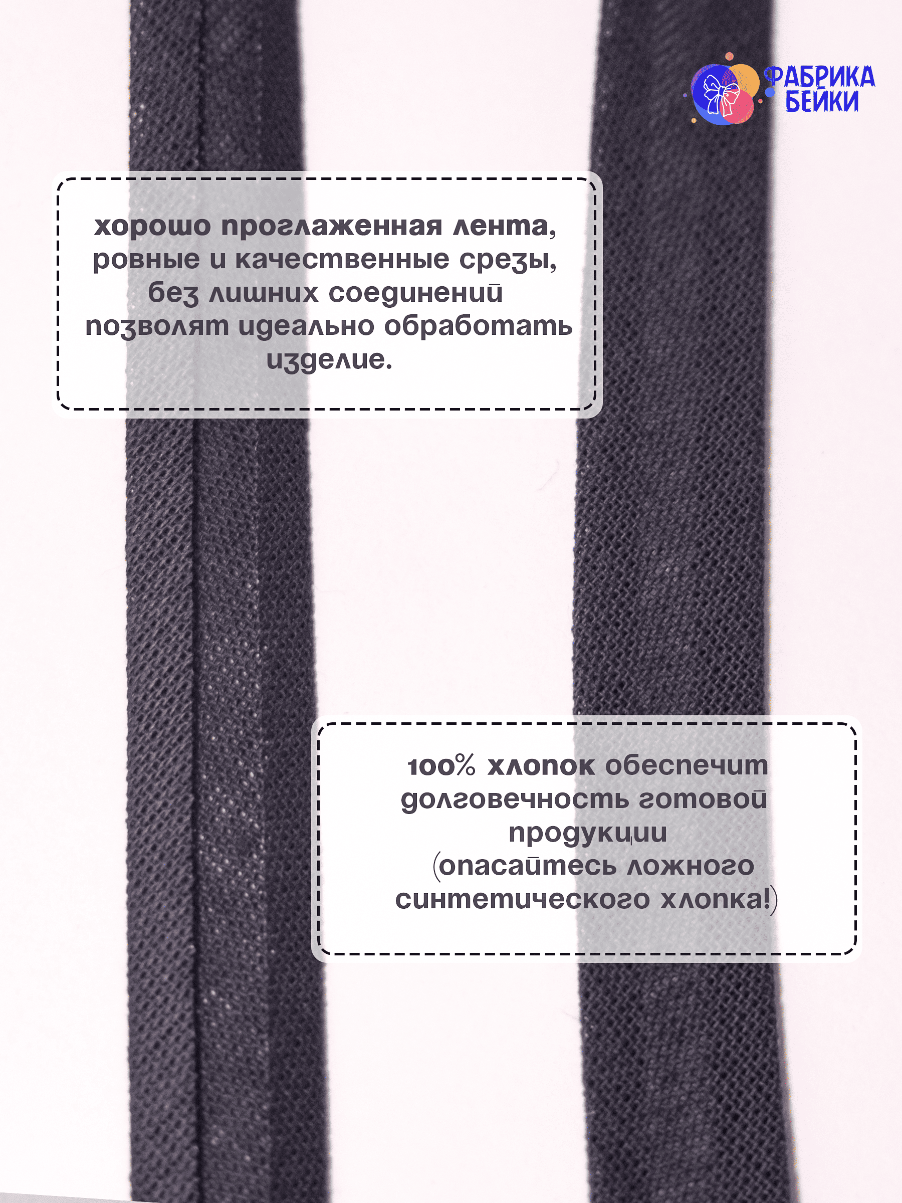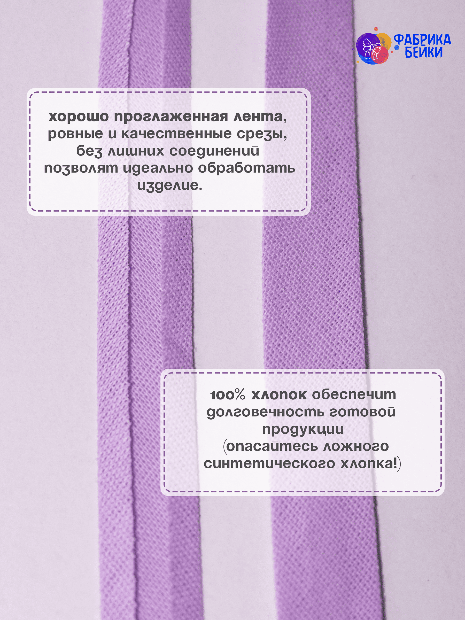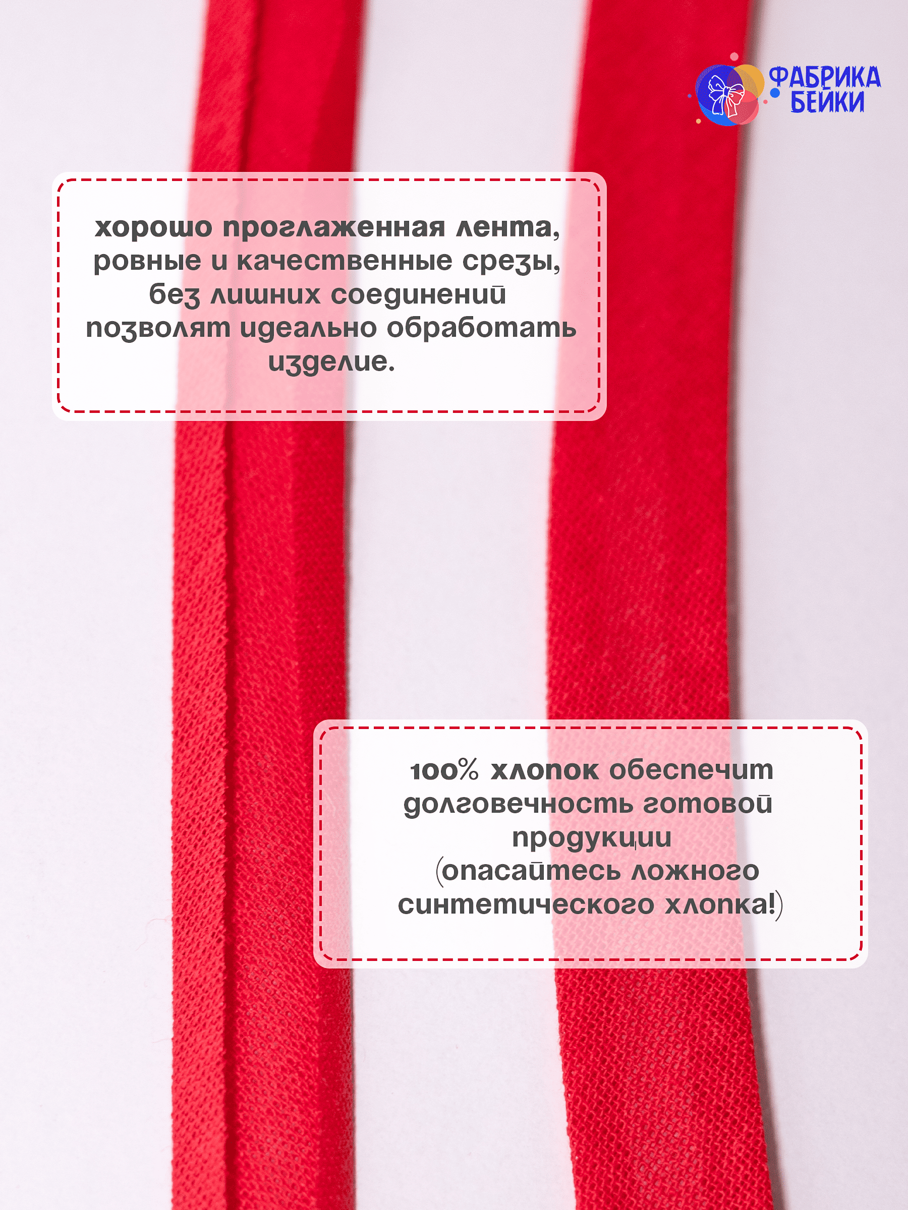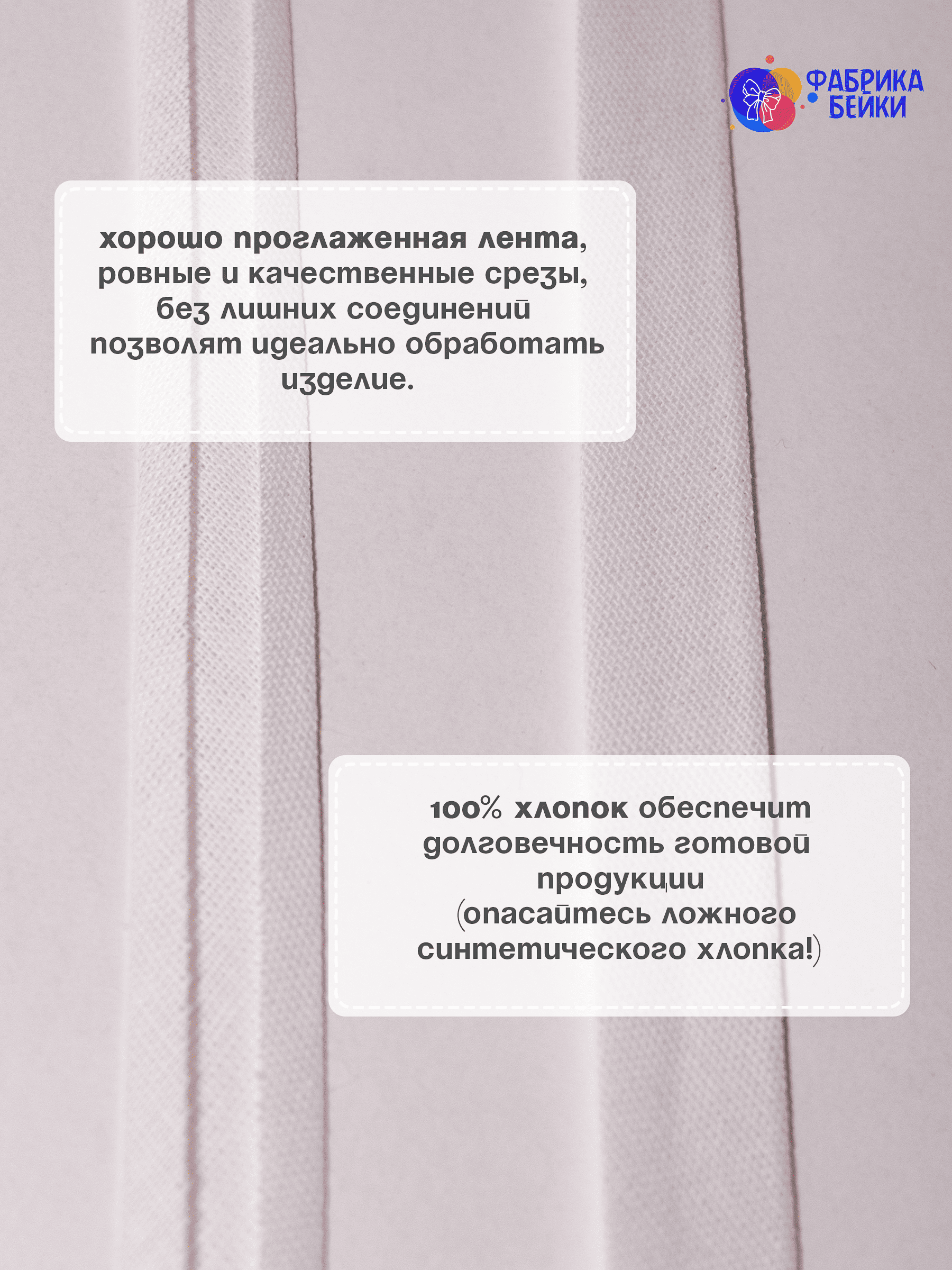 Изготовленная из 100% хлопка, раскроенная под углом 45% обеспечивает эластичность для обработки изделия, уже готовая к работе заглаженная по краям лента.