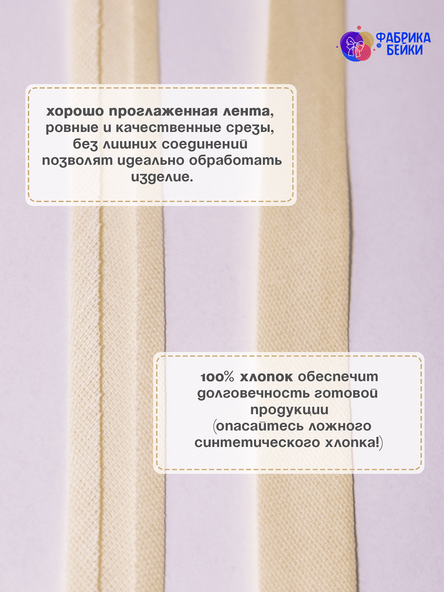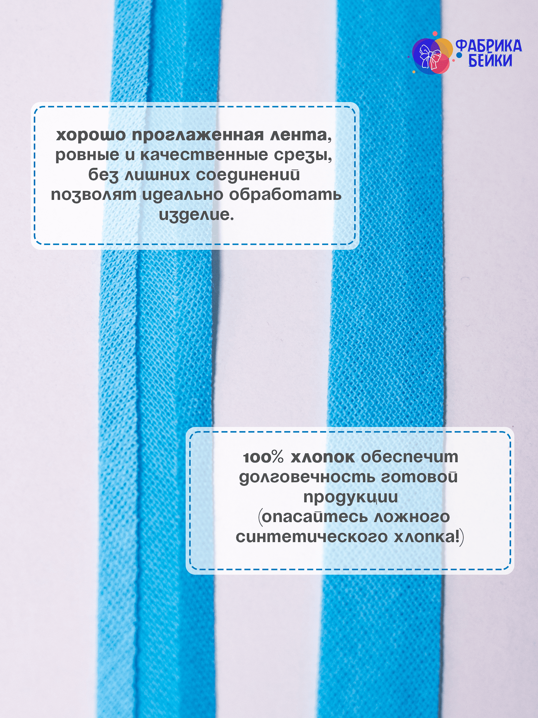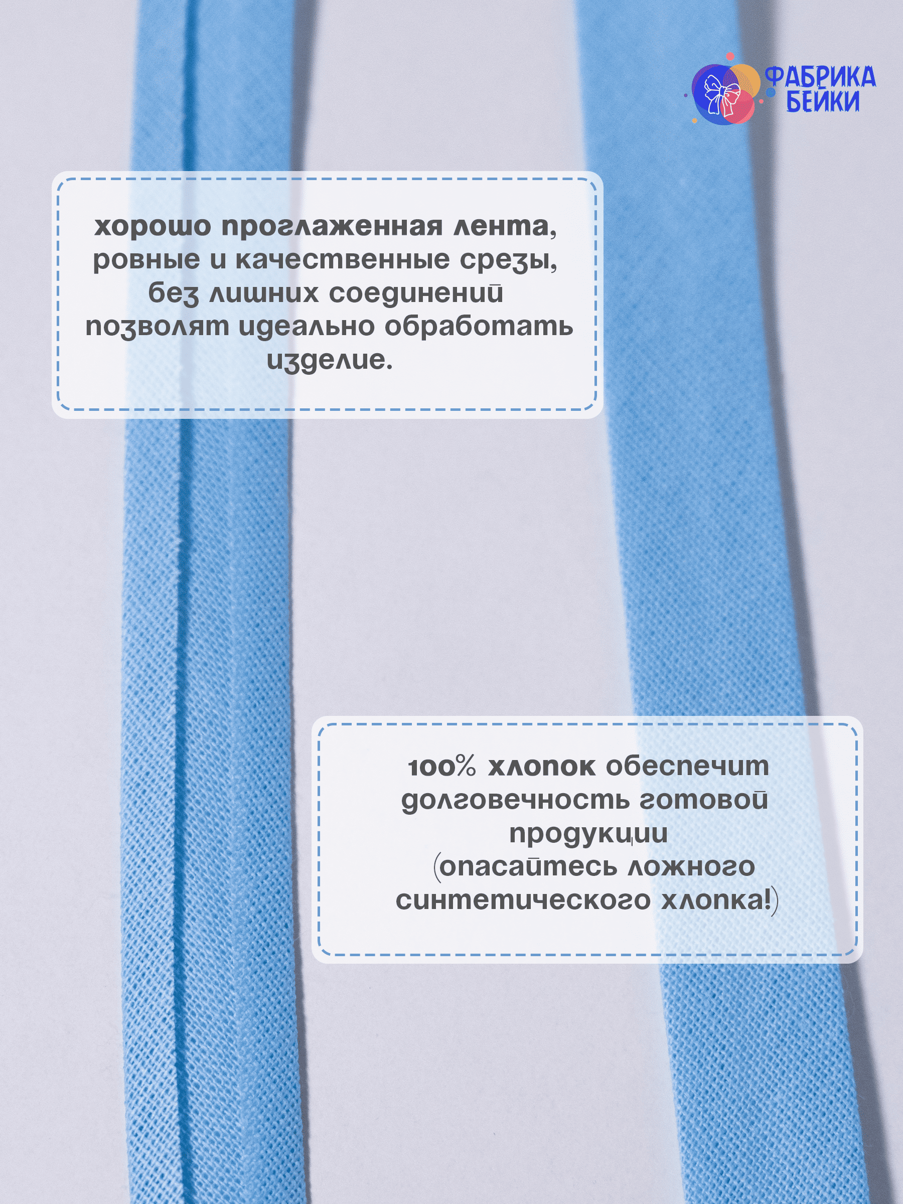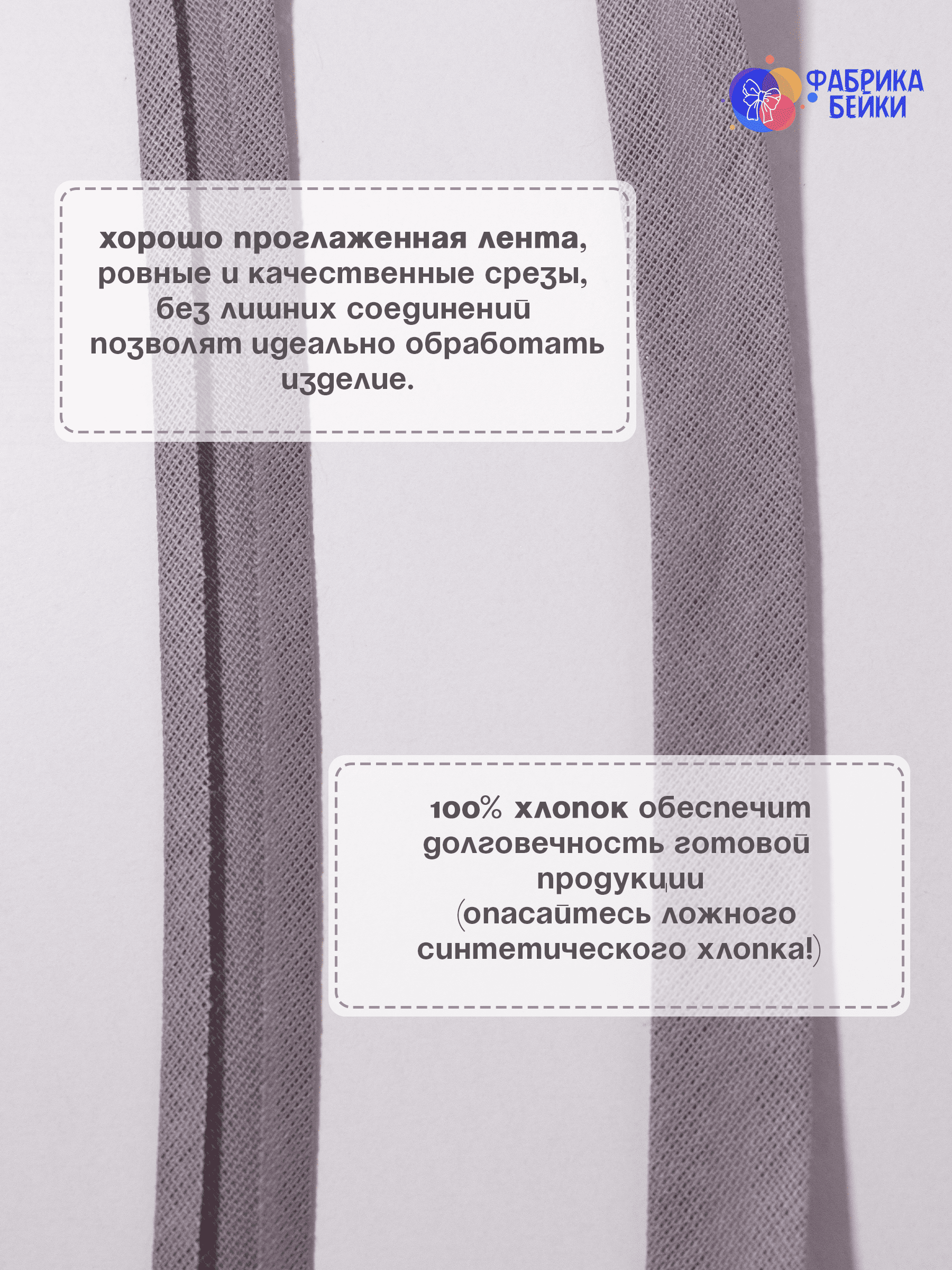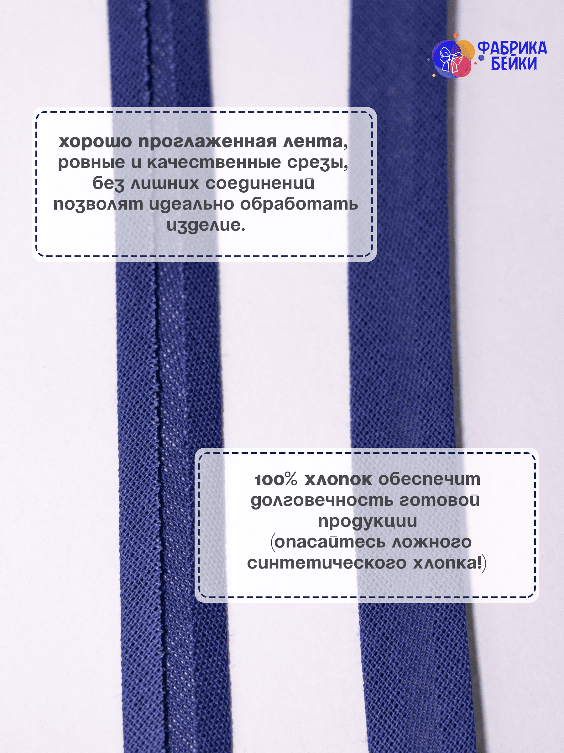 Изготовленная из 100% хлопка, раскроенная под углом 45% обеспечивает эластичность для обработки изделия, уже готовая к работе заглаженная по краям лента.