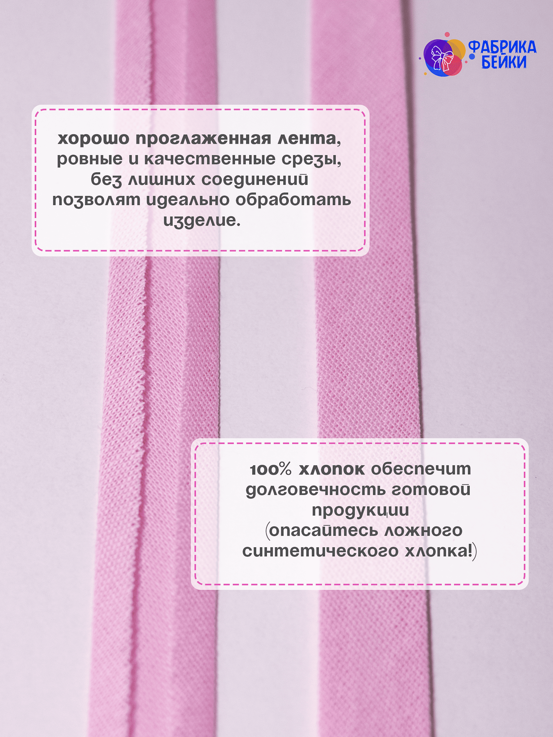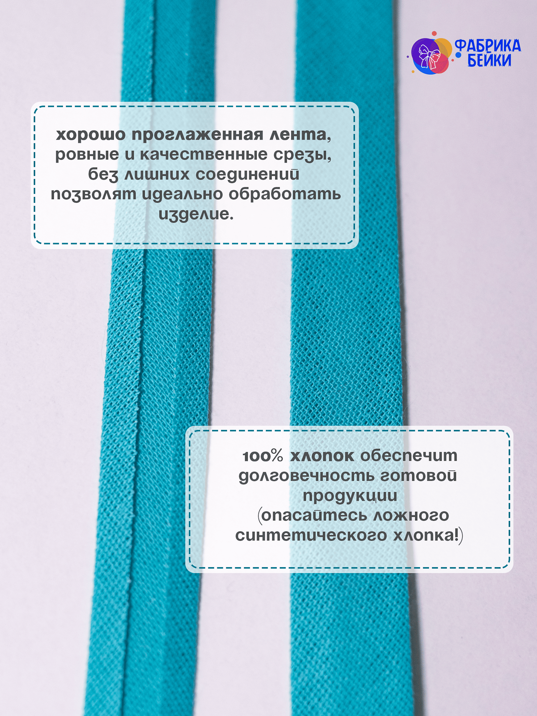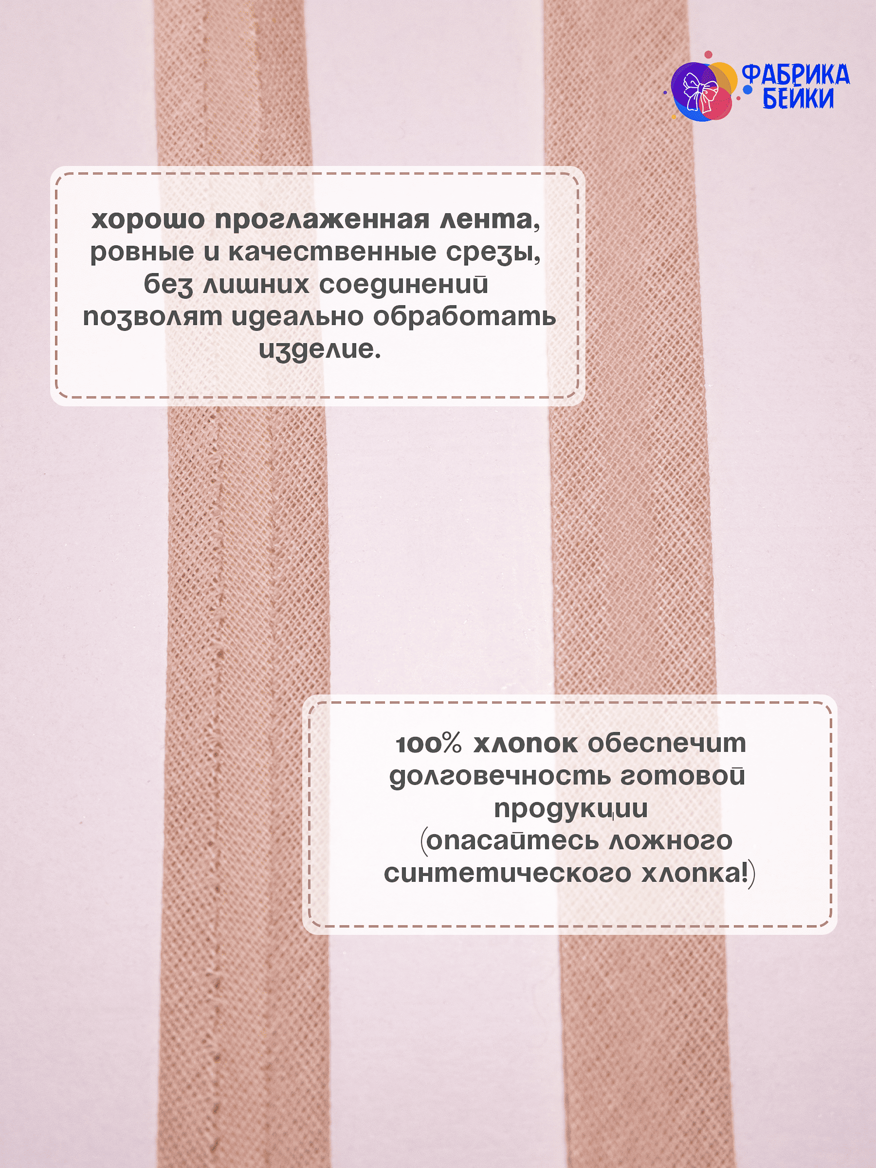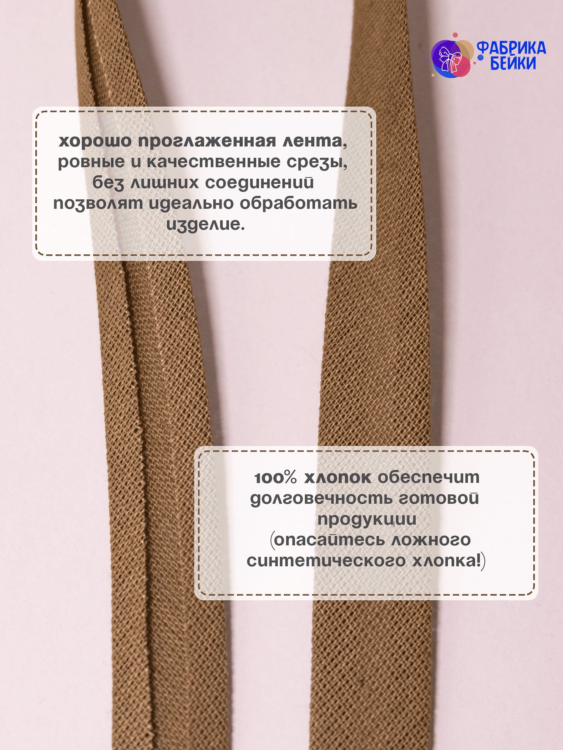 Изготовленная из 100% хлопка, раскроенная под углом 45% обеспечивает эластичность для обработки изделия, уже готовая к работе заглаженная по краям лента.