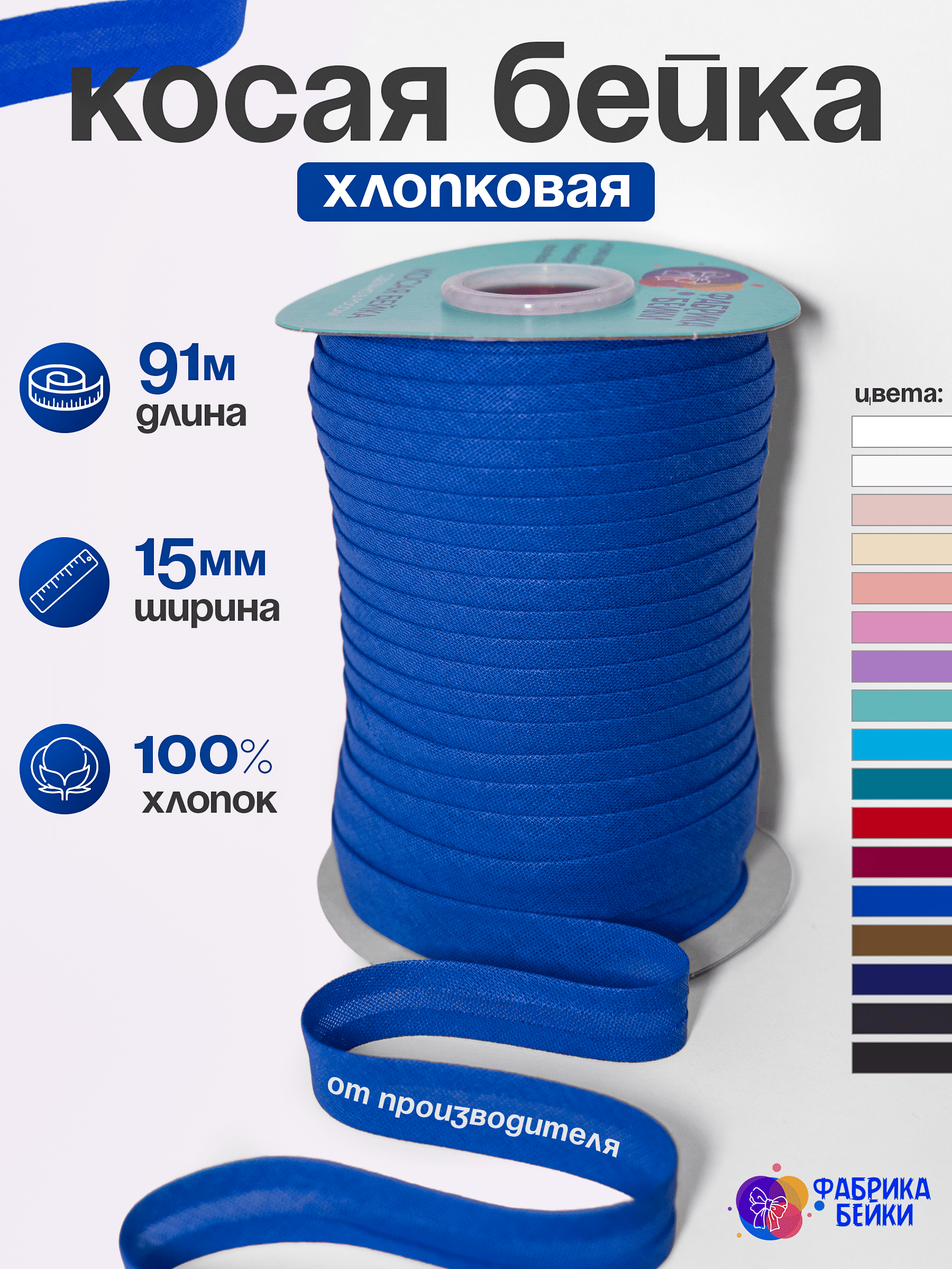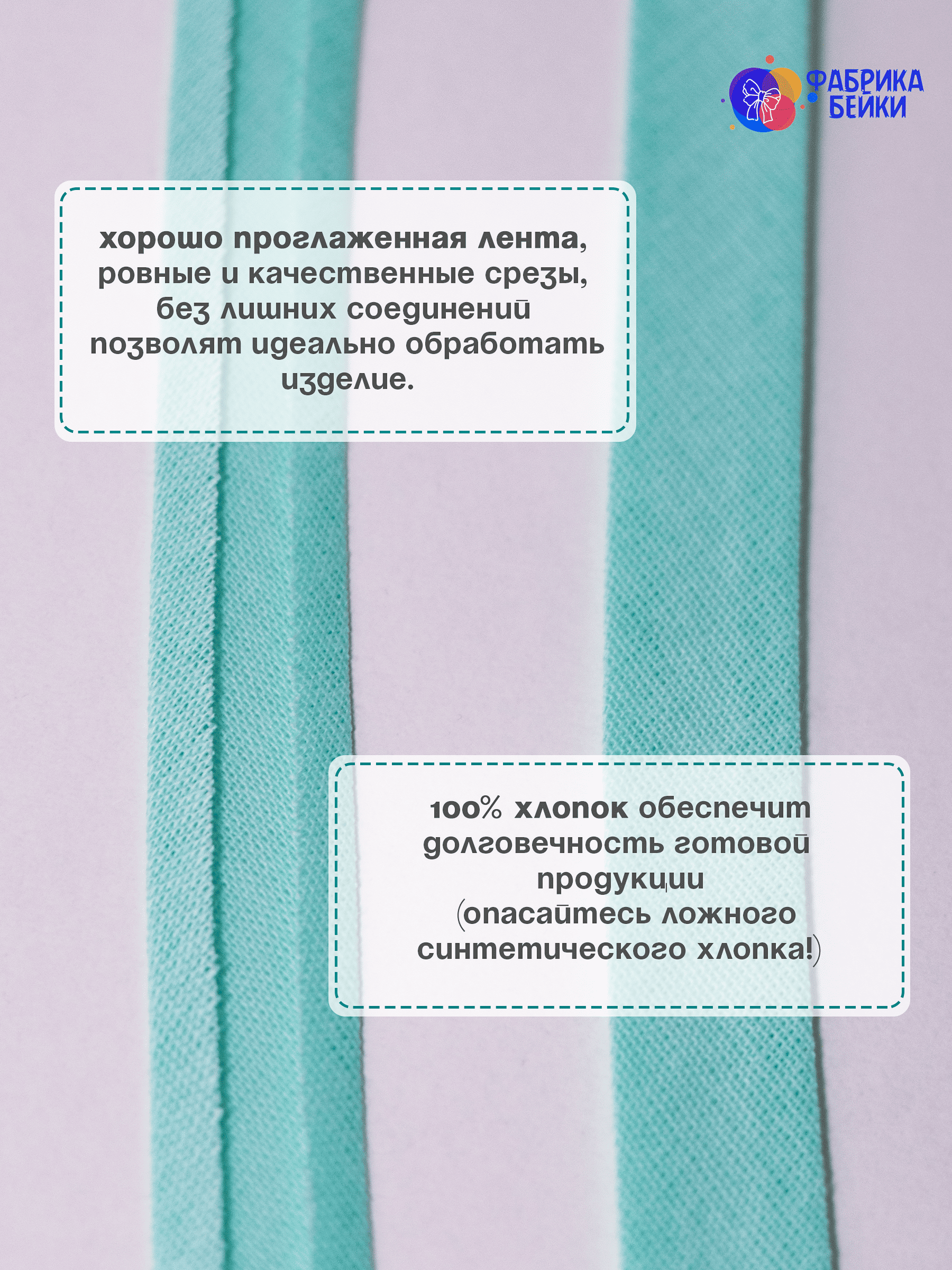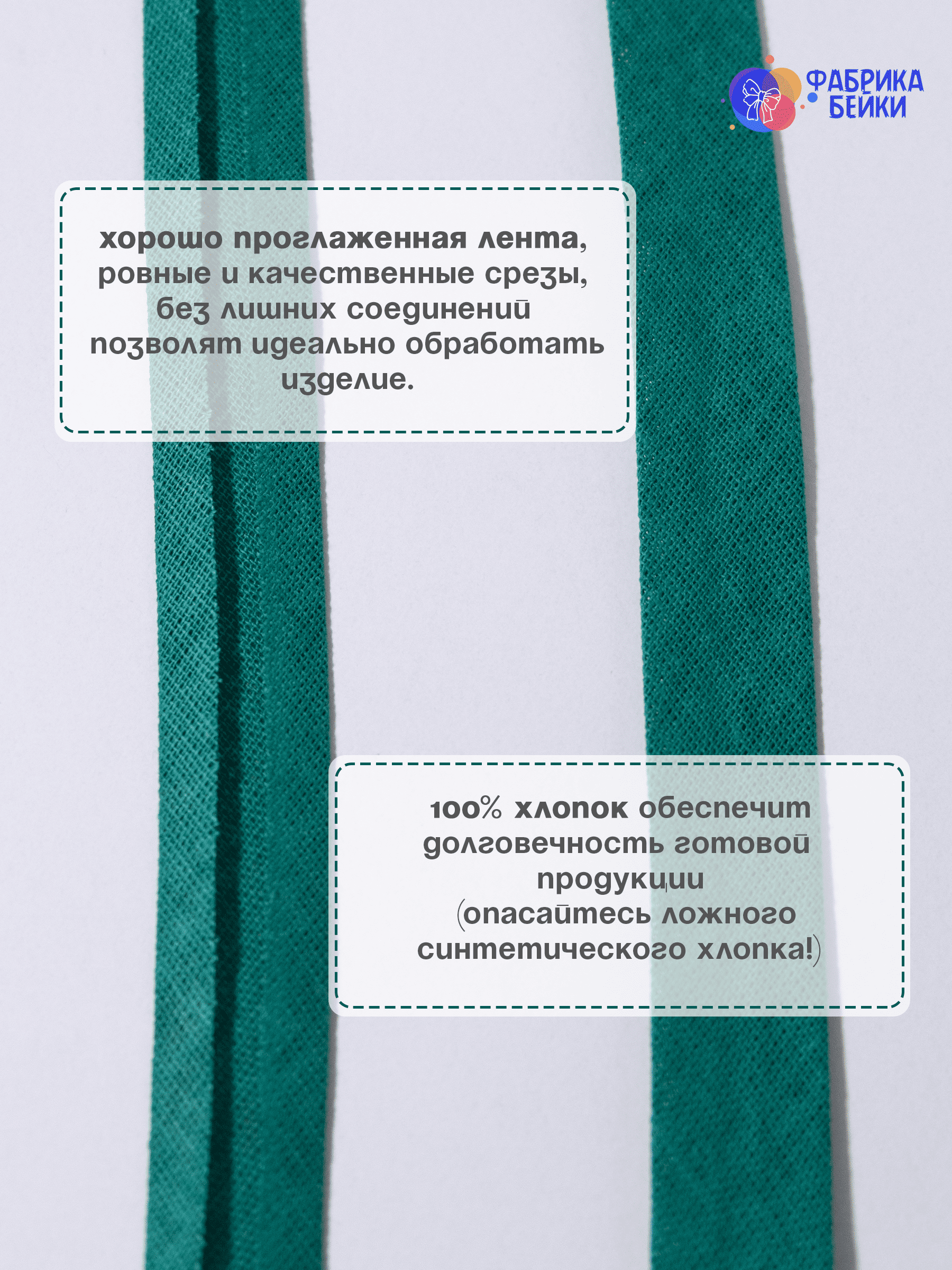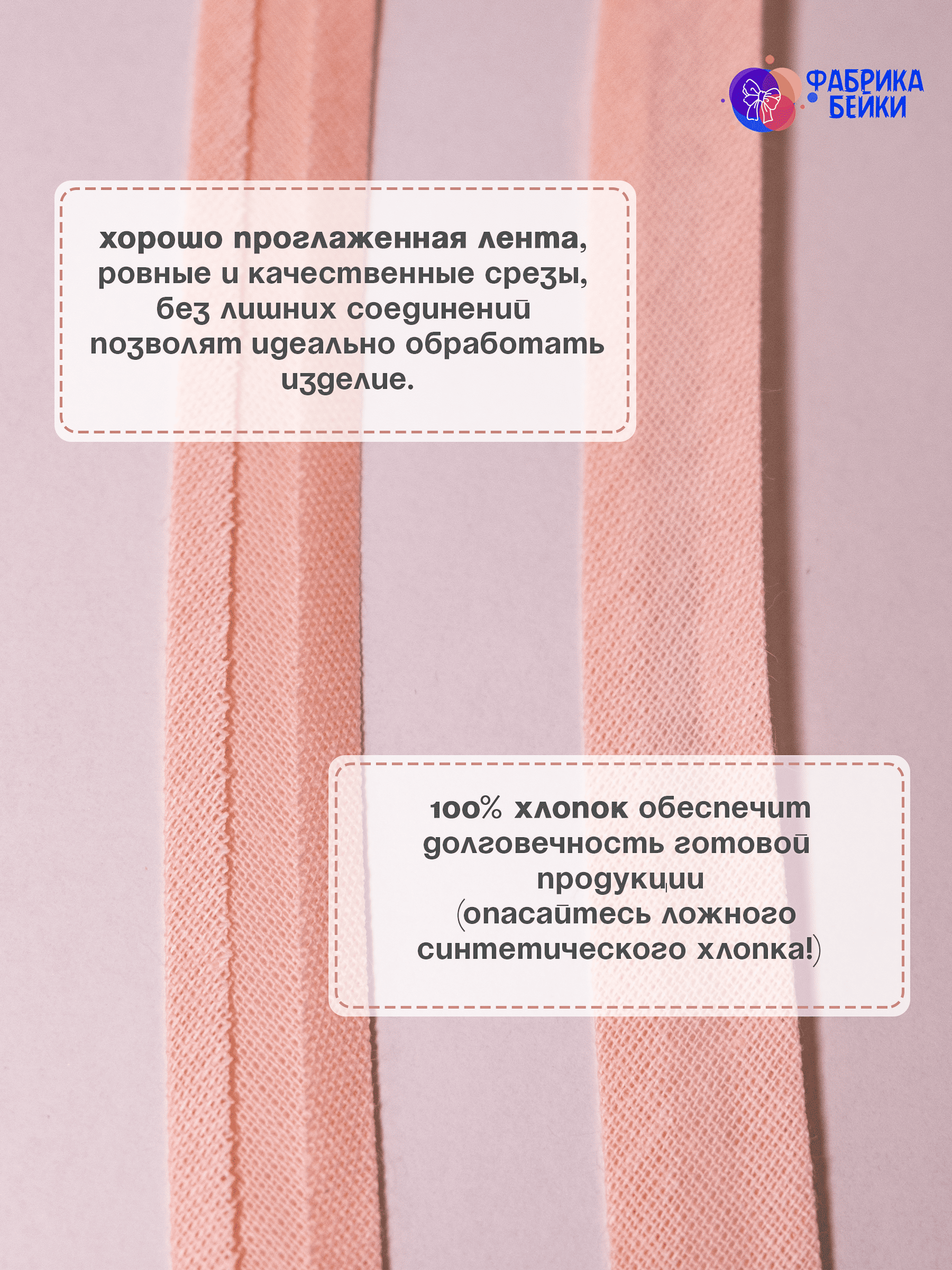 Изготовленная из 100% хлопка, раскроенная под углом 45% обеспечивает эластичность для обработки изделия, уже готовая к работе заглаженная по краям лента.